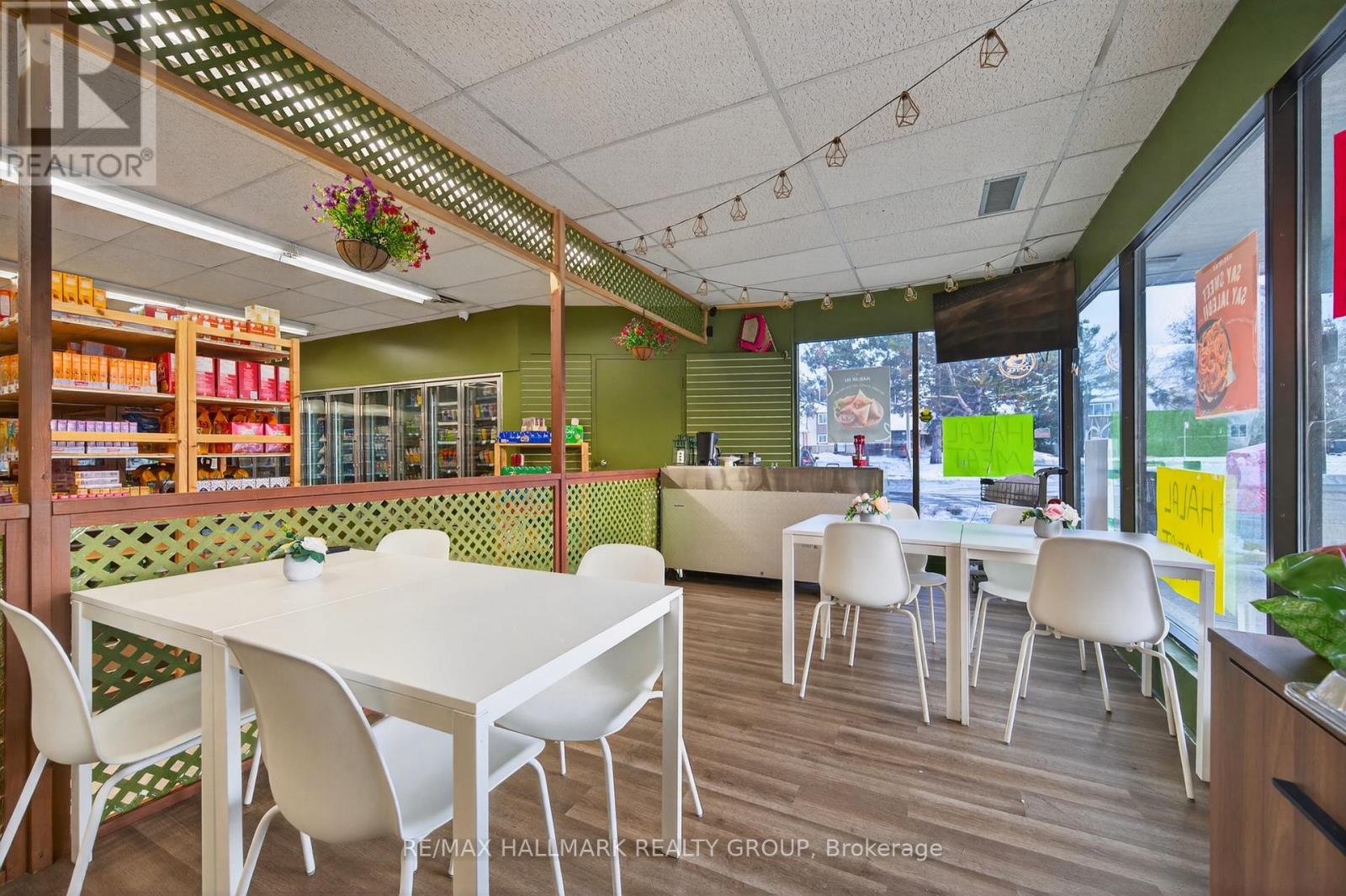 Turnkey Market and café for sale in a prime corner location in the heart of Orleans. This 2,138 sq. ft. space has been converted into a flexible market and café concept that can easily adapt to a wide range of business ideas, including a specialty grocery, fruits and vegetables market, dine-in restaurant, or mixed café setup. The unit is fully equipped with a small hood, walk-in cooler, standing freezers, deep freezers, wooden shelves, café equipment, updated lighting, CCTV cameras, and a bathroom, allowing a new owner to step in and operate immediately. The layout supports selling coffee, food, groceries, or ready-made meals, and the café seating area adds to the customer experience. Located just off Tenth Line in a high-visibility corner unit with strong residential traffic, this business offers excellent potential for growth and customization. A great opportunity for entrepreneurs or operators looking for a ready business with room to build their unique concept. Serious inquiries only. (id:62692)