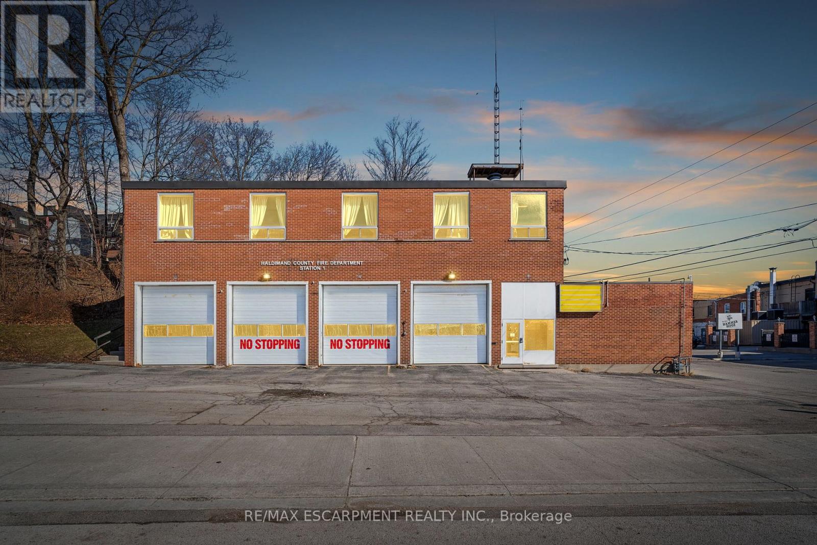 Excellent opportunity to acquire a well-known commercial building in the heart of downtown Caledonia, known as "The Fire Hall". This approximately 6,000 sq/ft building offers an impressive 198+ feet of frontage, providing strong presence and accessibility in a prime location. The main level features approximately 2,100 sq/ft of open garage/shop space with 14 ft ceilings and four 10 ft x 12 ft roll-up bay doors, making it ideal for service, workshop, storage, or many other commercial uses. Additional rooms on the main floor include separate spaces with a side entrance, offering potential for office, retail, or reception areas. The second level offers approximately 2,100 sq/ft of open hall space with hardwood floors, a kitchenette, and two bathrooms, creating a versatile space suitable for studio, office, event, or recreational uses. This level also features beautiful views overlooking the Grand River, adding to the unique appeal of the building. Located in a prime downtown setting, the property benefits from public parking directly across the street and strong visibility within the community. A long-standing staple in Caledonia, this building presents a rare opportunity for investors or end users seeking a versatile commercial property with character and long-term potential. Zoning is Downtown Commercial - allowing for various potential uses. (id:62692)