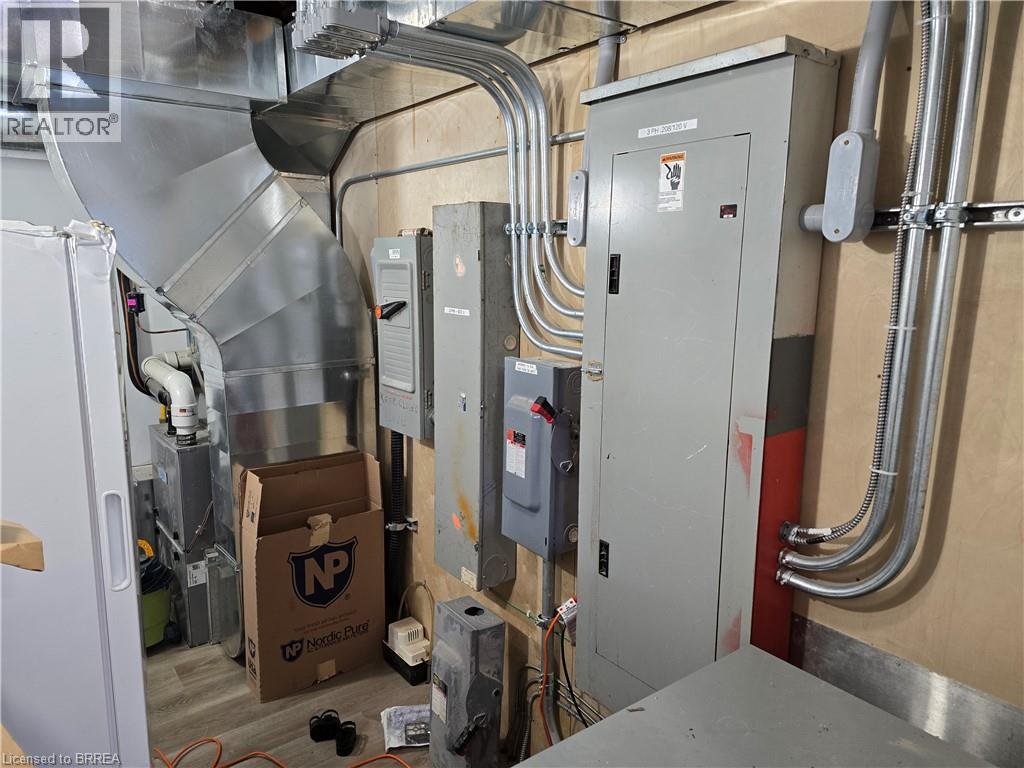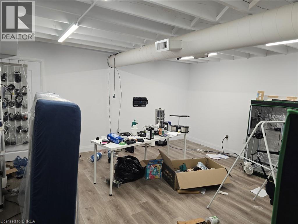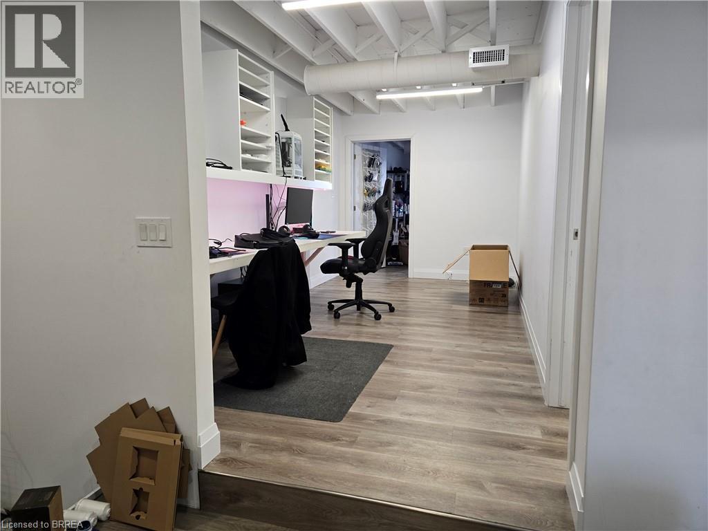Like-new office space in a quiet, private location across from the Brantford Airport, with quick access to Highway 403 and just outside of West Brant. The layout includes two large private offices, a large open area with oversized windows and great natural light, plus a separate larger area with a full kitchen. The space is currently being used for bitcoin mining, so it offers substantial electrical capacity for power-heavy uses. Also included is a full bathroom with a shower and laundry hookups. Zoning is C2-27, offering a wide range of commercial uses, and the -27 exception also allows M1 uses. (id:62692)