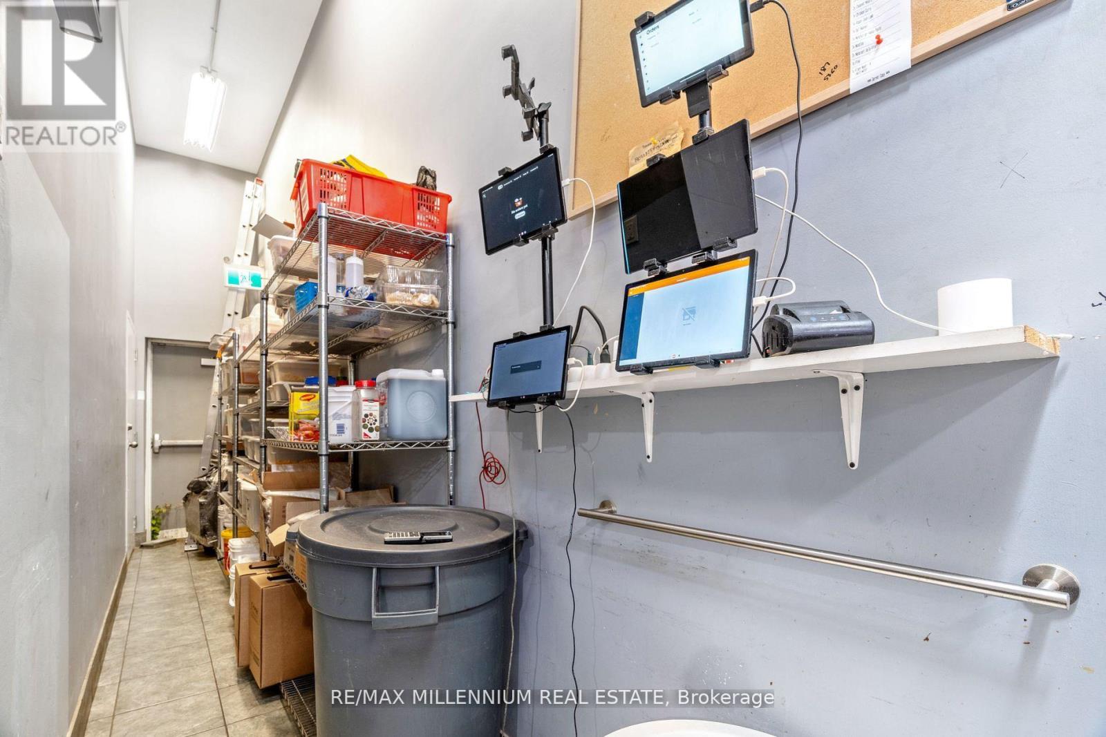 Turnkey 1900 sq ft commercial kitchen available with lease secured to 2029. Outfitted withtop-grade equipment including fryer, dough mixer, fridge, multiple tandoors, freezer,dishwasher, prep tables, sinks, and more. Enhanced with 16-camera security, host desk, and 75"TV. Current rent $5,200 + HST (TMI $1,000). Perfect opportunity for caterers, restaurants, or food production businesses looking for a ready-to-go space. (id:62692)