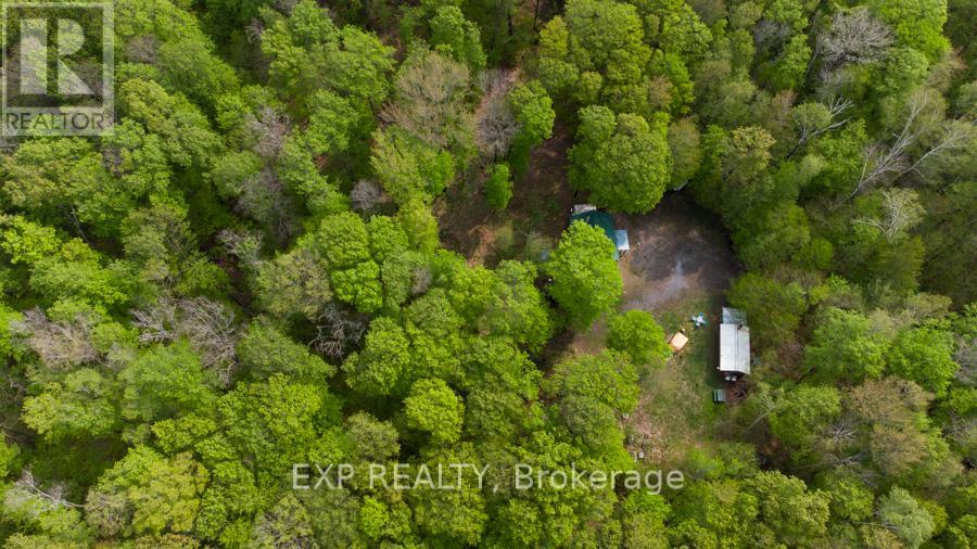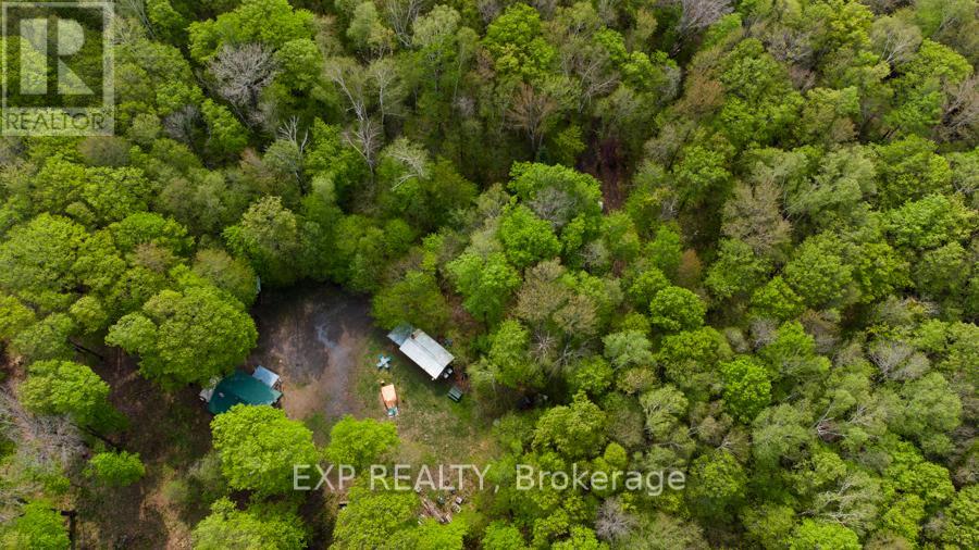 Set on approximately 50 acres of beautifully treed land, this unique rural property is comprised of two separate parcels being sold together, offering exceptional privacy and recreational opportunity in the heart of Harcourt. The property features multiple rustic cabins and outbuildings used for seasonal and recreational purposes, with established trails weaving throughout the land. Select outbuildings are fitted with wood stoves and include basic amenities such as a stove and fridge, enhancing the rustic, off-grid character of the setting. Allen Creek meanders through the property, creating a scenic natural backdrop with several picturesque areas to enjoy. Located just minutes from Elephant Lake and nearby public boat launches, the area is well known for outdoor recreation including boating, fishing, ATVing, snowmobiling, hiking, and hunting, subject to applicable regulations. Access is via Bill McLaren Trail, a quiet rural road surrounded by forest and crown land.This property is ideal for buyers seeking a private retreat, recreational land, or a long-term rural holding. (id:62692)