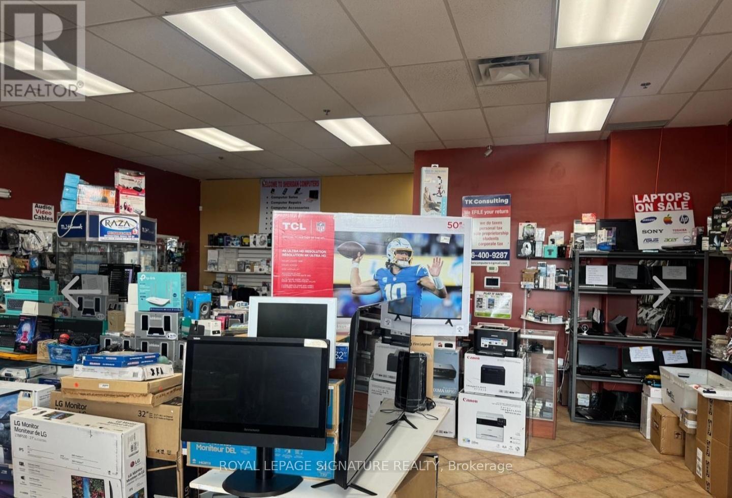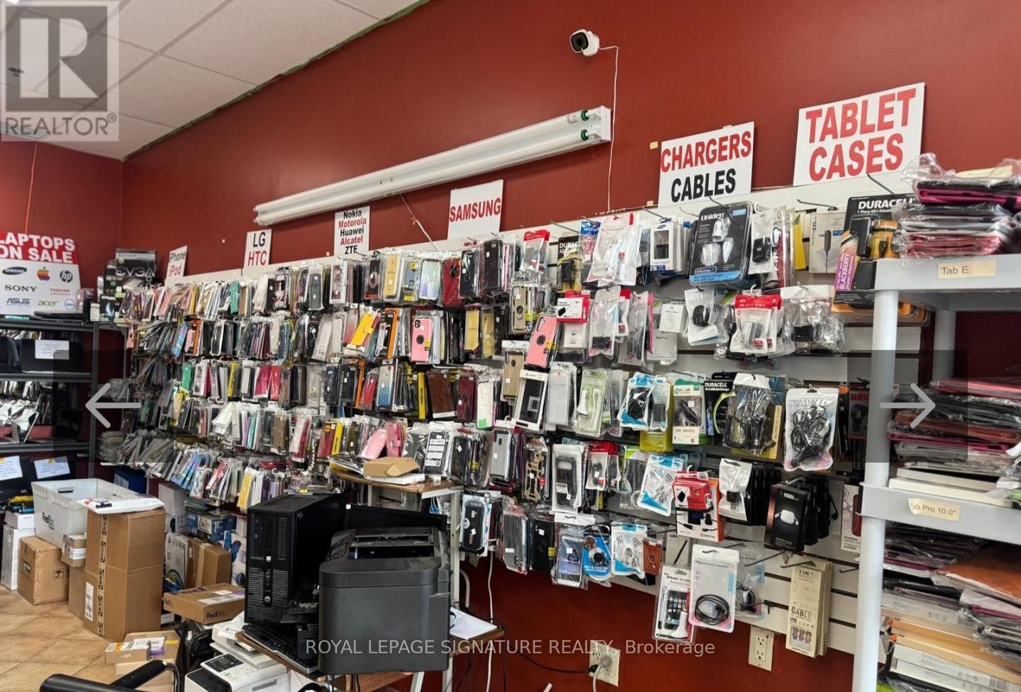 An excellent opportunity to own a running business in a desired and very busy neighborhood. Electronics retail, cell phone and computer repair, U-Haul dealer, Koodo dealer, FedEx Dealer, Oye dealer, Raza telecom dealer, Internet service provider, IPTV. Price include the inventory. Regular inventory like Phones, Computers, Laptops, Mac Book, TVS, Accessories. Interac Machine, Fax Machine, Microwave, Fridge etc. Annual gross income is $250-$270K. 22 years at the same location. lLow rent. Exclusive rights activation services of Koodo and Lucky mobile. Exclusive with Uhaul rental, FedEx, Oye phone to up, Internet services, Fax and printing services. Get most of your investment back in one year. This business has a high potential can be opened 7 days and longer duration of hours. Location is one of the busiest especially in the neighborhood of busy retail grocery store like Freshco, Tim Hortons, shoppers drug mart etc. Excellent neighborhood and highly populated , very close to schools , commercial areas, Hwys. . Full training can be provide. (id:62692)