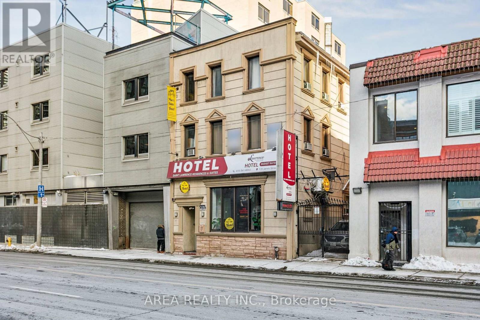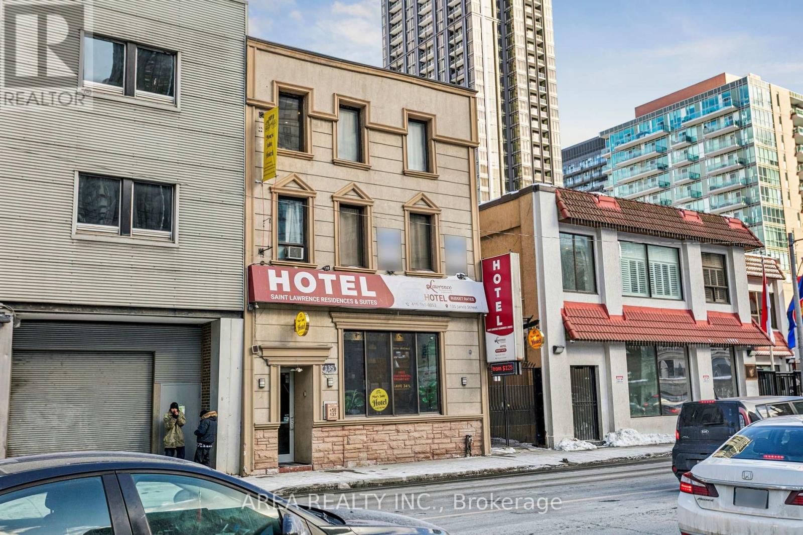 Rare opportunity to own a freestanding commercial building in downtown Toronto, steps from Queen Street East and Yonge-Dundas Square currently operating as a hotel and previously a rooming house. Featuring prime Jarvis Street exposure, a flexible layout with full basement, and zoning potential for retail, office, hospitality, or redevelopment, this property offers exceptional visibility and investment value. Surrounded by major developmentsand excellent transit, it's ideal for investors or owner-occupiers and across the street from the new Moss Park TTC station. Currently a 33-room hotel with vacant possession available, this property sits on a large lot delivering immediate income and a stone throw's away from the new Toor Hotel, and Holiday Inn. Strategically located just steps from the Eaton Centre, Toronto Metropolitan University, George Brown College, and St. Lawrence Market, this high-exposure property is surrounded by dense residential and institutional developments, offering strong foot traffic and connectivity. Rooftop terrace with skyline views ideal for future amenity space or rooftop activation. Private driveway with on-site parking for up to 3 vehicles. VTB possible for qualified buyers. Building will be sold as-is, where-is. (id:62692)