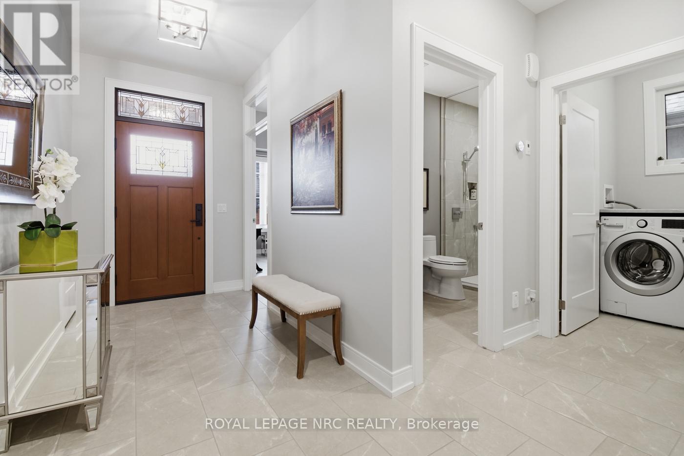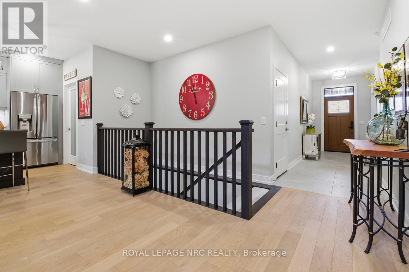 Architecturally striking and set against the breathtaking backdrop of the Niagara Escarpment, this exceptional end-unit Bungalow with a double-car garage offers over 2,200 sq.ft. of beautifully finished living space. Featuring 2+1 Bedrooms and 3 full Baths, this home blends luxury, comfort and low-maintenance living, enhanced by engineered hardwood flooring and energy-efficient triple-pane windows throughout. An inviting covered deck and lower level patio offers an additional private, outdoor entertaining area - the perfect setting for relaxation and hosting. Inside, the Great Room impresses with soaring vaulted ceilings, a dramatic feature wall, and a stunning 3-sided fireplace that anchors the space. The custom Artcraft Kitchen is designed to impress, showcasing ceiling-height cabinetry, quartz counters, a stylish walk-in pantry with a decorative door and a large island with seating for up to 5. A formal dining area sits nearby, ideal for gatherings. The private Primary Suite is thoughtfully tucked away, while a convenient main-floor laundry room adds everyday ease. The finished Basement boasts impressive 8'4" ceilings and includes a spacious Recreational Room, 3rd Bedroom, 3pc Bath and ample storage - perfect for guests or extended family. Enjoy a carefree vacant land lifestyle with grass cutting, snow removal and water usage included, giving you more time to explore all that Niagara has to offer. Just steps from the Bruce Trail, Decew Falls, Morningstar Mill & Short Hills Provincial Park, with easy access to golf courses and renowned wine routes. Upgrades throughout - too many to list. A must-see to truly appreciate the craftsmanship of this quality-built Rinaldi home - your next address awaits! (id:62692)