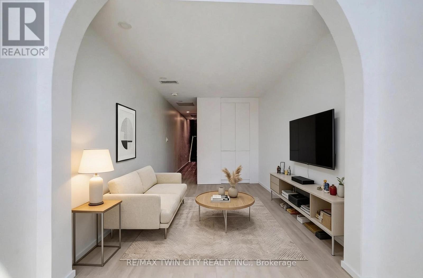 Welcome to a truly one-of-a-kind opportunity in the heart of downtown Kitchener-where modern design meets incredible versatility. This architecturally striking building, completed in 2025, offers a rare combination of two beautifully appointed residential units along with a vibrant commercial space, making it ideal for a live-work lifestyle, Airbnb or savvy investment. This impressive property spans over 3,200 sq ft, showcasing innovative design at its finest. Each residential unit features its own private entrance, leading into a dedicated hallway & staircase that enhances privacy. Residential Unit A is filled with character, highlighted by a dramatic two-storey window overlooking lively King Street. Unique rounded ceiling details add softness to the modern aesthetic, while the primary loft suite features a glass-railed overlook to the living space below. Upstairs, the bedroom includes a full ensuite, complemented by a stylish powder room on the main level for guests. A rooftop patio with views over King Street provides the perfect urban retreat. Residential Unit B offers a similar layout with its own distinct charm. A striking two-storey window frames views of Goudies Lane. Enjoy a private balcony off the living area, while the upper-level suite features a full ensuite and open-to-below design. A convenient main-floor powder room and a rooftop patio with sweeping skyline views complete the space. At street level along Goudies Lane, a 600 sq ft commercial unit presents endless possibilities-perfect for a boutique shop, café, takeout concept, or contemporary office. The space includes rough-ins for a kitchen & accessible washroom rough-ins and has one dedicated parking spot. With a Walkscore of 99, this prime downtown location puts everything at your doorstep. Just steps from the ION LRT stop & steps to the Kitchener Market, local cafés, nightlife, shopping, and Centre in the Square. (id:62692)