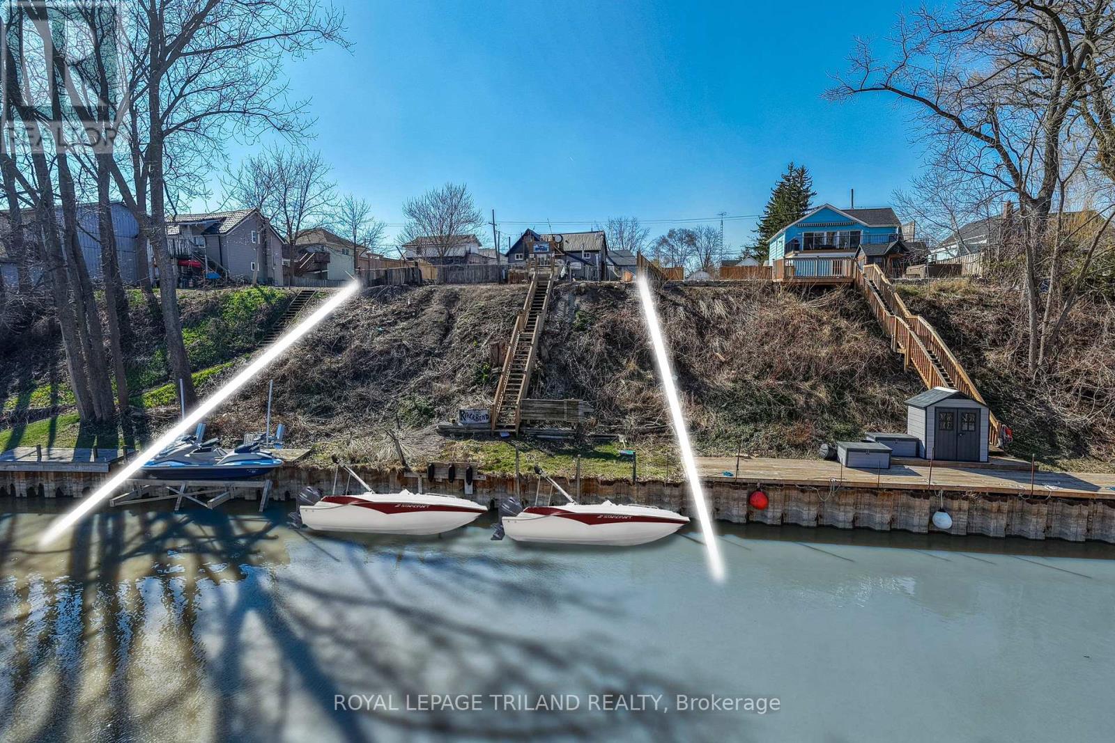 RARE RIVERFRONT COMMERCIAL OPPORTUNITY IN THE HEART OF GRAND BEND | 68.4 FT OF BOAT PRIVATE DOCKAGE | RESTAURANT/RETAIL SPACE + RESIDENTIAL APARTMENT! Welcome to 26 Ontario Street South, a truly exceptional mixed-use property in one of Ontario's fastest growing year round beach destinations. Perfectly positioned just steps from the beach with approximately 68+ feet of private river frontage and boat docking, this is your chance to establish-or expand-your dream business in an iconic, high-traffic location. The main level offers approximately 620 sq ft of restaurant / bar / retail space, previously licensed for 40 patrons, complete with men's and women's washrooms and a commercial kitchen (equipment included AS-IS). The kitchen was updated in 2018, featuring a NEW walk-in cooler and a new 5.5-ton A/C & heat pump, with forced-air gas heating on the restaurant level. There's also a partially completed outdoor patio, plus additional exterior space presenting an untapped opportunity for future expansion and enhanced patio licensing. Above the commercial space is a self-contained residential apartment or office, with its own private entrance, full residential kitchen, 3-piece bathroom, and an outstanding 21' x 11' sun deck overlooking the river. This would be an inspiring place to live, work, or host & could offer some premium AirBnB / short term rental income. The upper unit is heated with a newer A/C & heat pump, & the 360 virtual tour will show you the apartment (for restaurant, just refer to photos). Whether you envision a bar, restaurant, café, retail boutique, or a live-work waterfront business, this established location offers visibility, lifestyle appeal, and long-term upside in a community that continues to thrive beyond the summer months. With on site parking + enough dockage for 2 boats & a jet ski + the residential unit, this site can earn! PROPERTY IS BEING SOLD AS-IS / WHERE-IS: Inquire with your Realtor for further details and viewing opportunities. (id:62692)