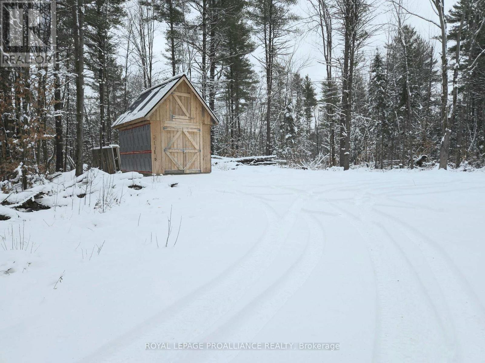 Take advantage of the newly expanded HST rebates for new builds! Nestled on 2.72 acres, this versatile property is already well on its way to becoming your ideal country retreat or year-round residence. With a driveway installed, a small garage/workshop in place, and a drilled well ready for use, much of the groundwork has been completed for your future build. The lot is partially cleared, offering a blend of open space and natural woods-perfect for creating a private cabin in the trees or a comfortable residential home. Outdoor enthusiasts will appreciate being close to the Snowmobile Trail and just a short 5-minute drive to several beautiful lakes, including Mazinaw Lake and Skootamatta Lake. Conveniently located within 10 minutes of small-town amenities, you'll have quick access to a grocery store, butcher shop, hardware stores, a dollar store, gift shop, outdoor supply store, and more. Whether you're seeking tranquility, recreation, or the perfect place to build your dream home, this property offers an excellent head start and a wonderful location. (id:62692)