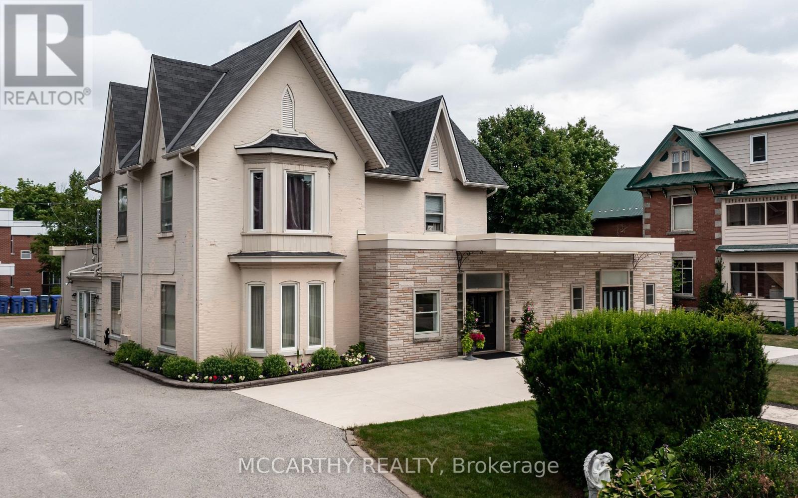 Excellent Downtown Location On Main Street Shelburne. Big Century Home converted to Offices and Meeting rooms. Appros 5,514 Sq Ft. More recently has addition of a chapel, large meeting room, Plus two other large rooms on main Floor, two entries into Triple car garage heated., Large Foyer meeting area, main floor 2pc bathroom, Huge Lot & Building. Mixed Use, C2 Zoned Commercial & Residential Interior Space With Many Possible Uses. Large Downtown Lot With Plenty Of Parking for 14 + Has Back Lane Access drive thru and into the 3 Car Heated Garage. Front Double Door Entrances into a Chapel with seating for 130, Side Door Entry into side foyer and access to garage and Dining room/meeting room. Private Front Lobby with entrance to chapel and private area and stairs second floor. Large Event & Meeting Rooms, Set up as a Chapel and could be used for many uses, currently With Wooden Pews, High Ceilings, on both floors, 2 Bathrooms, 2pc on main floor and one 4pc on Second floor. Second floor used for offices now, in past has been residential for live work situation, 2nd Floor has a Kitchen, 4 Pc Bath & up to 2.5 storey has 3 Living/Office Rooms. Two large walk in closets. could make a great residential area and used as bedrooms. Has Storage rooms /small bedrooms. stairs to Attic, not finished but potential for bonus room. Super spot to Live and Work or rent out. Easy access to Street Parking, Side Walk Entry brings to centre of pretty main entrance. Semi Circle Double Wide Front Driveway has two entrances off of Main St and drive thru the Side Driveway thru to the back lane. Great Opportunity for Many uses, Investment Opportunity or Develop into a great new Store, Meeting space, Restaurant! Main Street Iconic Local Building, Centre of Town In The Growing Town Of Shelburne. High traffic area, Many Opportunities & Uses. Many opportunities for Entrepreneur, Residential and or Commercial Office. See attachment for floor plan and zoning. (id:62692)