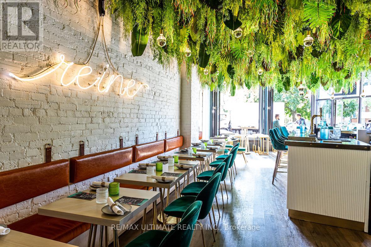 Come to the Koolest Korner on King St E and find your Destiny in The Distillery District!! This compelling space was designed as a lunch spot during the day, and atnight the lights go down, and the cocktails start flowing. The evening snack and cocktail bar attracts guests looking for fun snacks, eccentric cocktails, while listening to curated playlists in the coolest vibe on King East, just steps from the historic Toronto Distillery District. Ready for your new concept to define this neighbourhood! Interior LLBO for 30 + CafeTO (approx 25 seats) Full basement with catering kitchen. (id:62692)