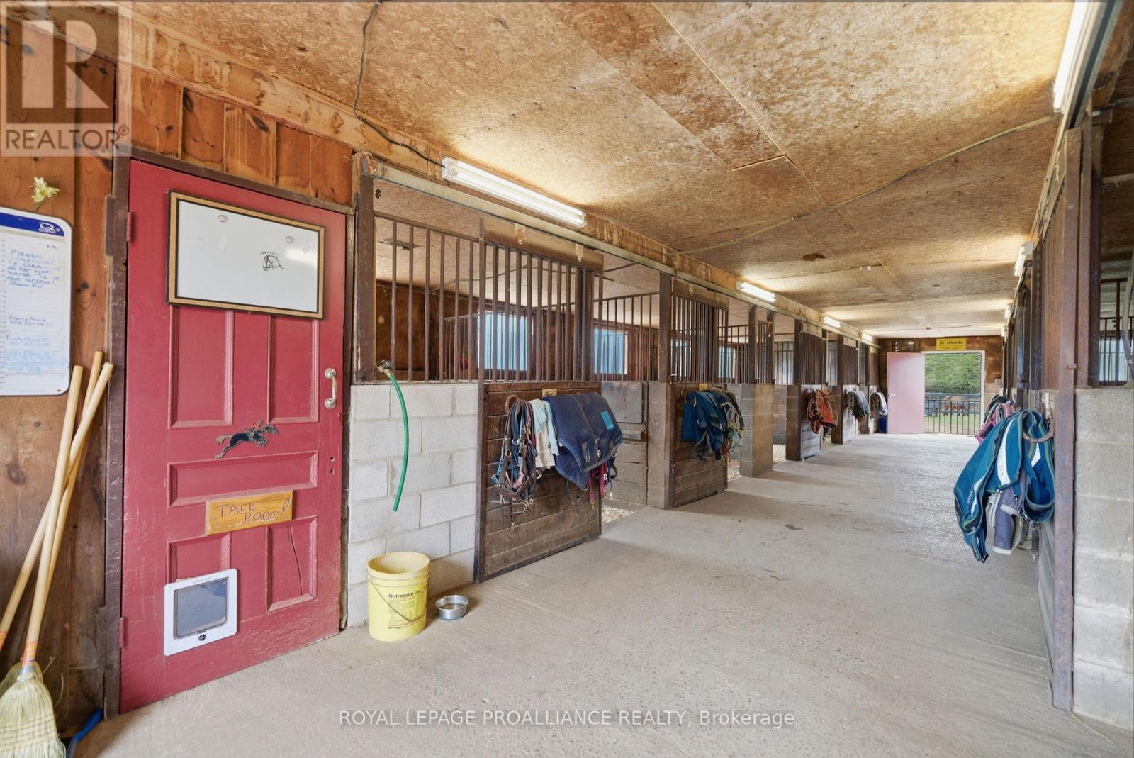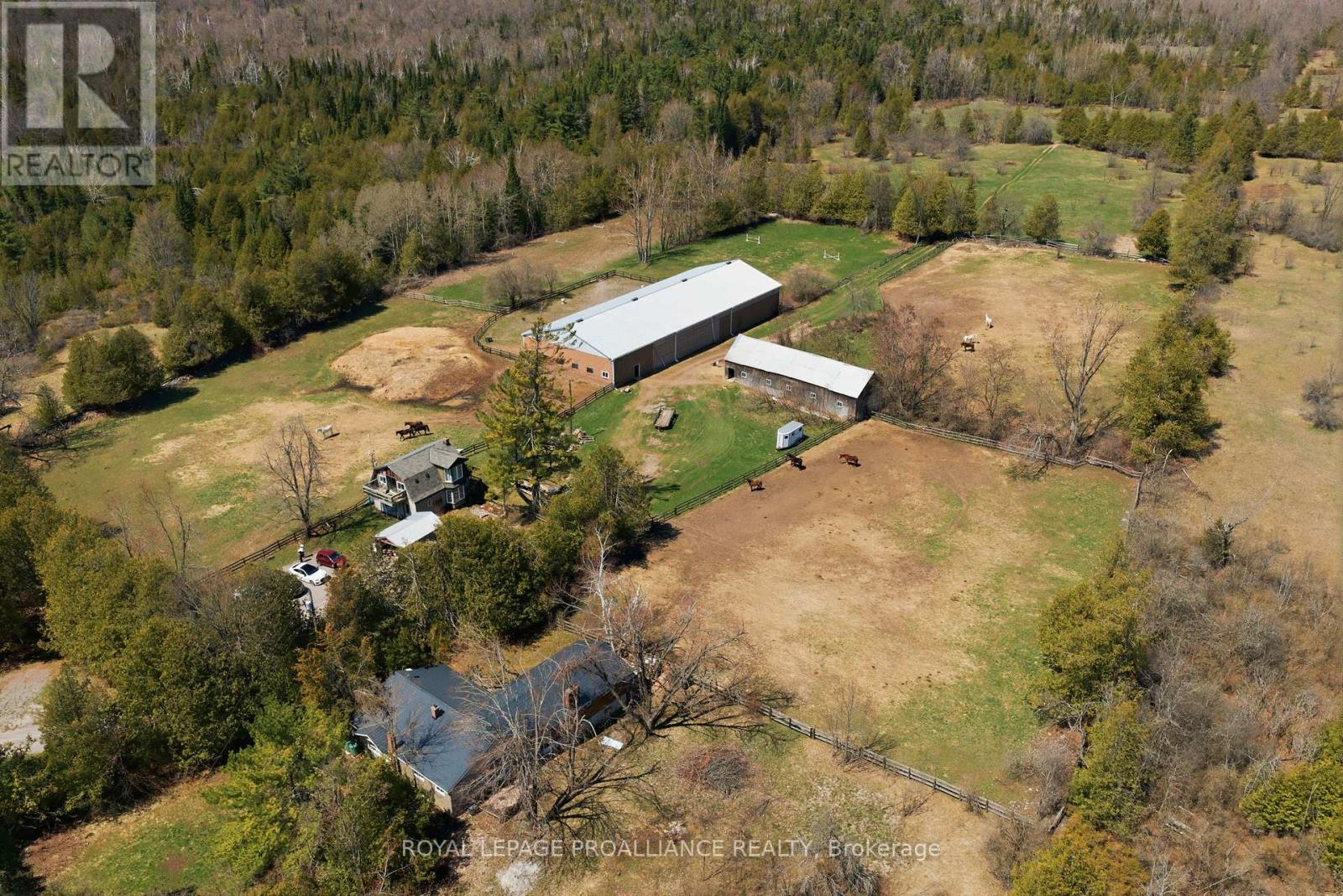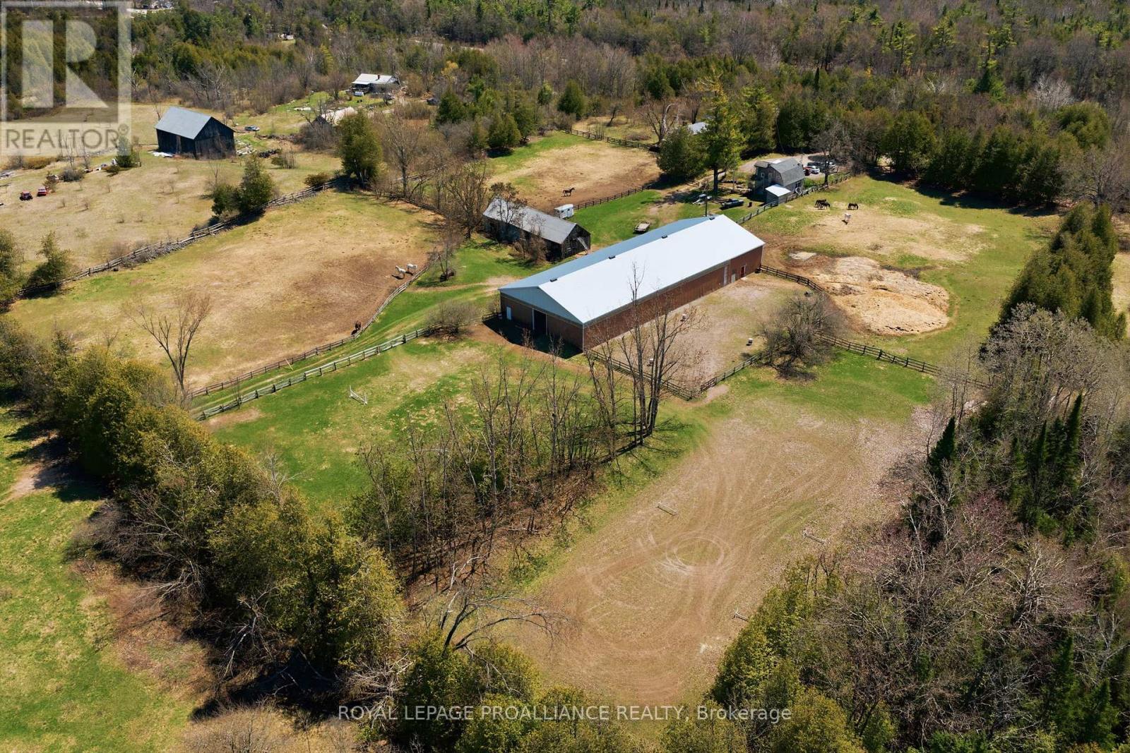 Set on a stunning 46-acre parcel just minutes from the charming village of Lakefield, this exceptional equestrian facility offers a rare opportunity to own a well-established and successful horse property in a highly desirable location. Known for its welcoming community, boutique shops, and access to the scenic Trent-Severn Waterway, Lakefield also provides convenient proximity to Peterborough for all major amenities. The property has been operated as a thriving riding school and boarding facility for decades and is thoughtfully designed for both personal enjoyment and business potential.The main barn features 9 stalls, a feed room, tack room, and an attached 20x40m indoor arena complete with an insulated viewing area, while the second barn offers 12 additional stalls and a spacious hay loft. Outdoors, riders will appreciate multiple riding areas including a 20x40m sand ring ready for refreshing, a 20x60m sand ring ready for refreshing, a dedicated jumping area, and trails winding throughout the property. A pond, fed by an artesian well that also services the home, enhances the natural beauty of the setting.Privately situated away from the barn activity, the main residence offers a main floor primary suite with ensuite, an additional 3+1 bedrooms, and another full bathroom. The inviting living room is anchored by a cozy wood-burning stove, perfect for creating a warm and welcoming atmosphere, while the front porch provides a peaceful retreat at the end of the day. Additional accommodations include a separate granny flat or staff house with two units-one ready for use and the other awaiting completion-ideal for staff, guests, or multigenerational family.This is a truly unique opportunity to own a turn-key equestrian facility in a prime location, perfect for those looking to grow an equine business or embrace a country lifestyle without compromise. (id:62692)