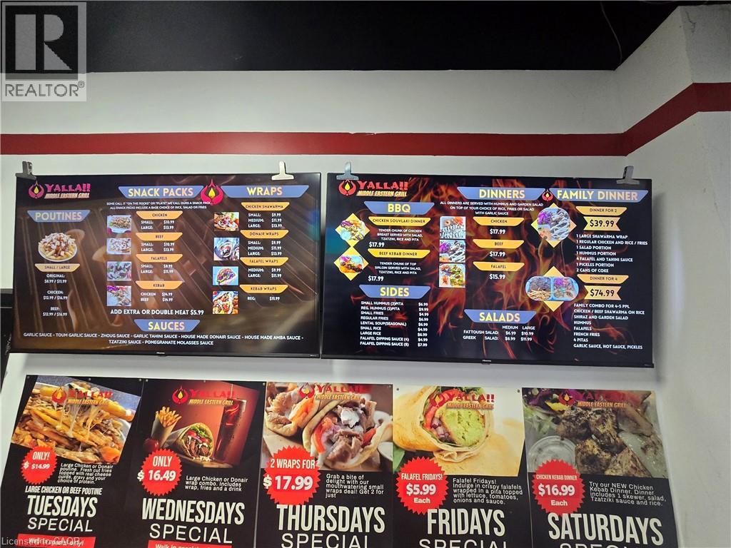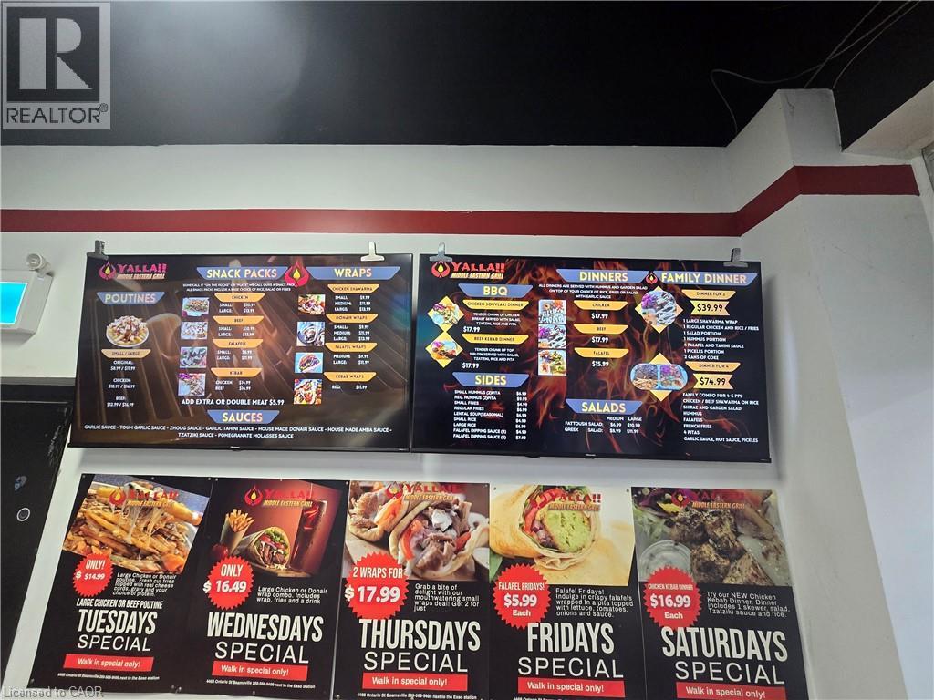 Prime quick-service restaurant opportunity located on Ontario Street in downtown Beamsville. This high-visibility location, just off the QEW, benefits from steady traffic and is ideally positioned to attract customers exiting the highway. Currently operating as Yalla Middle Eastern Grill, the business has demonstrated growing sales and strong income potential for an owner-operator. The space offers flexibility and may be converted to a different concept, cuisine, or franchise. The seller is willing to provide training to support a smooth transition. The premises feature a 13-foot commercial hood and newer equipment throughout, offering a well-equipped turnkey setup. Please do not approach staff or ownership directly. (id:62692)