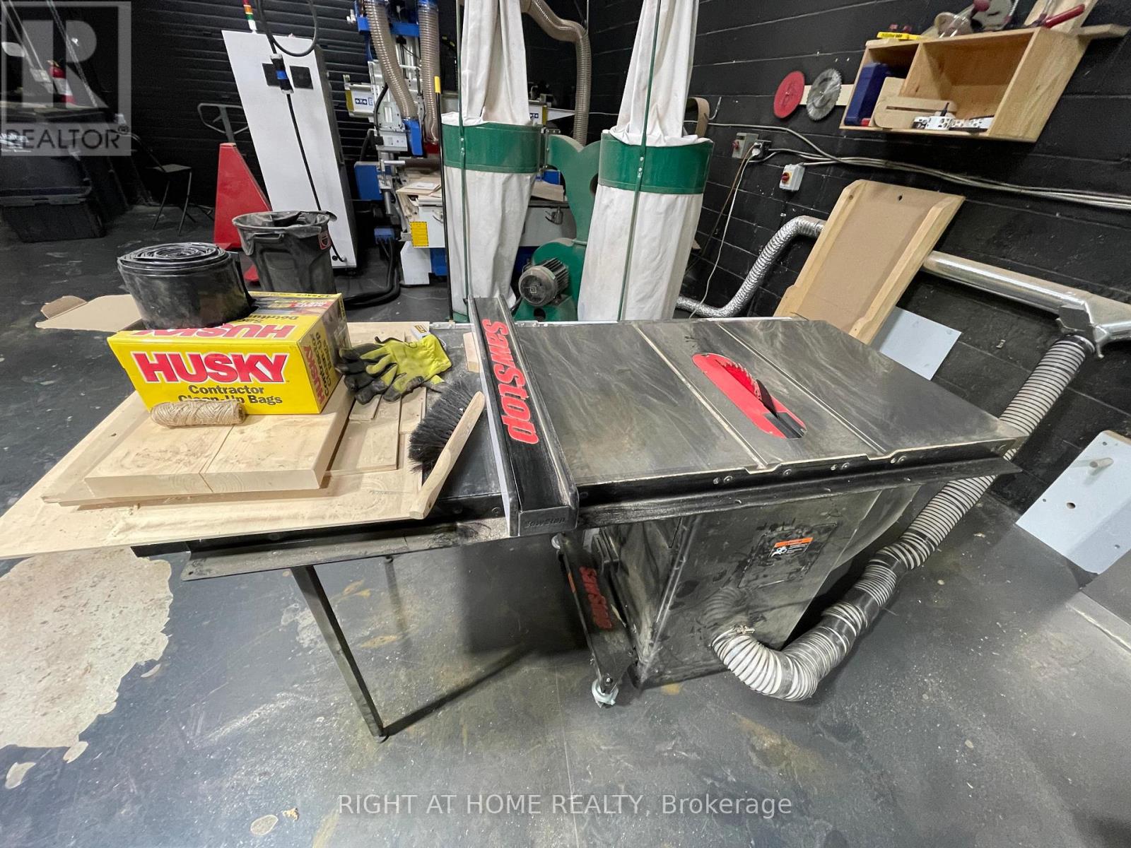 Woodworking Shop With All The Machinery. A fantastic opportunity to sub-lease a fully outfitted woodworking shop complete with all major machinery. Simply move in and begin working right away. This gross lease covers net rent, TMI, and exclusive access to all included equipment (see attached list). The tenant is responsible only for 75% of utilities. The space has been fully renovated from top to bottom and features, 95% shop and 5% back office that is shared with current tenant. Current tenant will be occupying 5% of the total space at the back area. Easy Access To Q.E., 403 & 407 Hwy. Extras: Enjoy substantial savings-no need to purchase equipment or handle installation, electrical, plumbing, or renovation costs. This turnkey setup includes a full range of woodworking machines and tools at your disposal. (id:62692)