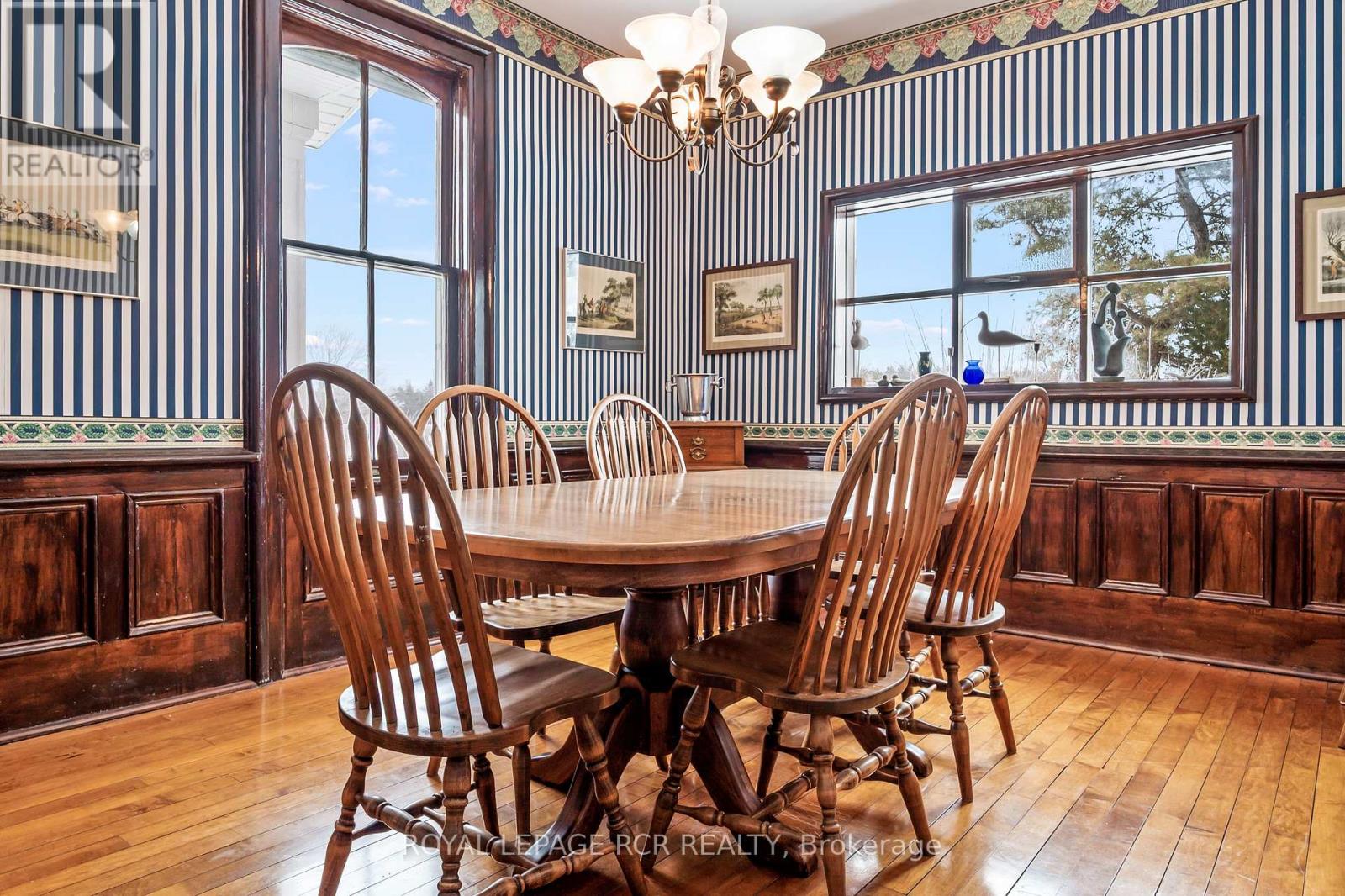 Set on 11 acres, this classic red brick farmhouse offers timeless character rarely found. Surrounded by open fields, mature trees, and endless skies, the setting provides peaceful rural living with privacy and idyllic views in every direction. Inside, original charm unfolds at every turn. Hardwood floors, detailed millwork, and tall windows fill the home with warmth and natural light. The formal dining room with wainscoting and a traditional chandelier creates an inviting space for holiday dinners and long evenings gathered together. Multiple living areas allow for both entertaining and everyday comfort. The cozy sitting room features an exposed brick fireplace with a substantial wood mantel, framed by tall windows overlooking the landscape. A second family room with wide plank floors and generous windows offers a relaxed space that brings the outdoors in. The kitchen blends rustic charm with practicality, offering extensive cabinetry, ample counter space, and views across the property, ready for everything from quiet mornings to larger gatherings. Upstairs, spacious bedrooms continue the warm and welcoming feel, each with hardwood flooring and classic trim. The primary bedroom provides a comfortable retreat, while additional bedrooms offer flexibility for family, guests, or a home office. Beyond the home, the property truly shines. The 11 acre parcel offers space for hobby farming, livestock, gardens, or recreation. A substantial horse barn supports equestrian and agricultural use, with versatility for storage or workshop space. Open fields and a picturesque backdrop make it ideal for a family wedding or special gathering. A detached sauna offers a private place to unwind and take in the surrounding views. There is a sense of space here that is hard to replicate, and even harder to leave. In every season, snow covered fields and golden sunsets make this a rare opportunity to own a classic farmhouse with room to grow. (id:62692)