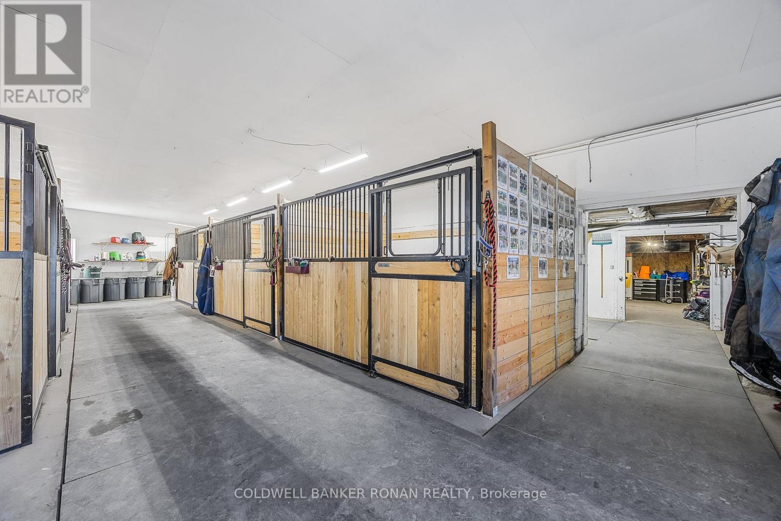 Exceptional 118-acre working farm just minutes from the thriving town of Alliston, offering a rare combination of agricultural income, multigenerational living, and business potential. Currently operating as a bison and Texas Longhorn cattle farm, this property is well-equipped for livestock or expanded agri-business use. Two custom homes provide flexible living options. The main residence features a spacious eat-in kitchen with walkout to a landscaped yard and in-ground pool, multiple living areas, main floor primary bedroom, office, and five additional bedrooms upstairs. The finished walkout lower level includes a recreation room, kitchenette, and bath. A second walkout bungalow (1998) offers 2+3 bedrooms, ideal for extended family or income potential. Extensive infrastructure includes 800-amp service and a 10kW microFIT solar system generating approx. $10,000/year. Farm buildings include six grazing sheds (32' x 360'), a 130' x 50' shop (approx. 40% cold storage) attached to a 50' x 80' building (approx. 90% cold storage), a 40' x 100' coverall, multiple run-in sheds, and a large bank barn with retail/event potential and possible living quarters, plus lower-level equestrian setup. Approx. 80 workable acres, with portions currently in pasture. A turnkey farm with scale, versatility, and long-term opportunity in a prime location. (id:62692)