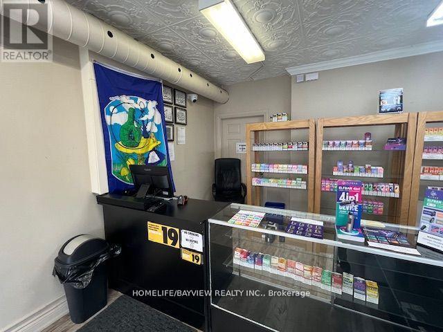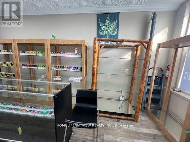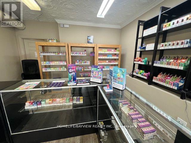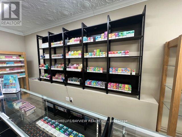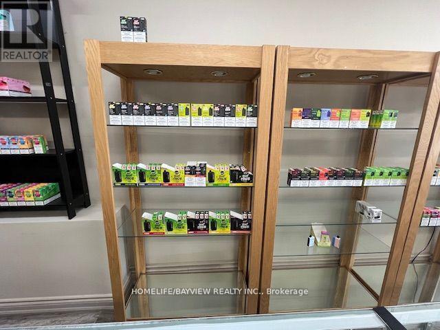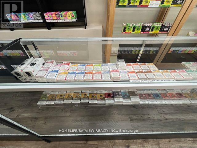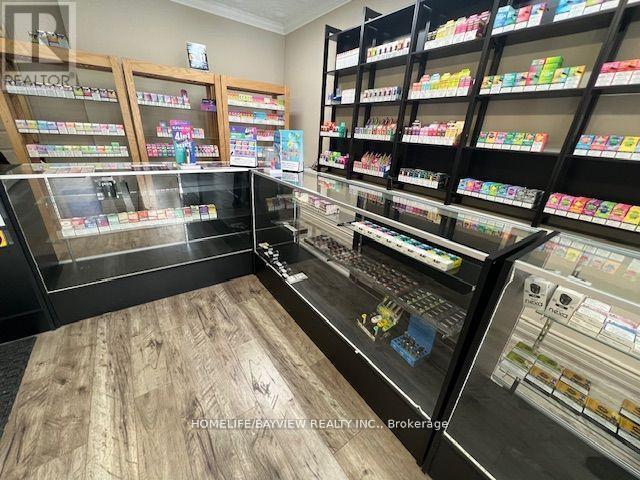 Excellent opportunity for an established vape shop located on busy Main Street in Stouffville. Strong and steady sales (all documented sales) and highly profitable shop selling vape products, bongs, shisha pipes, specialty cigars, and glassware. Strategically located next to a marijuana shop. Easy 1 person operation. Employee operated – could improve sales if more owner involvement. Do not miss this opportunity! Full set up included with display cases, humidors, slot walls, shelving, etc. Very short hours: 7 days/week, 1pm-8pm only. Could increase sales if hours increased. Current rent $2500/Month includes TMI & HST. Lease 5 + 5 years option to renew. Please do not go without appointment – employee operated business. (id:62692)