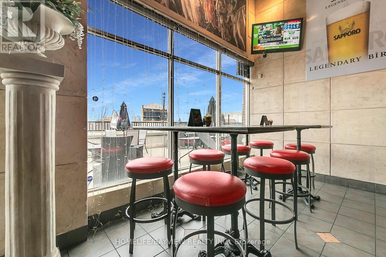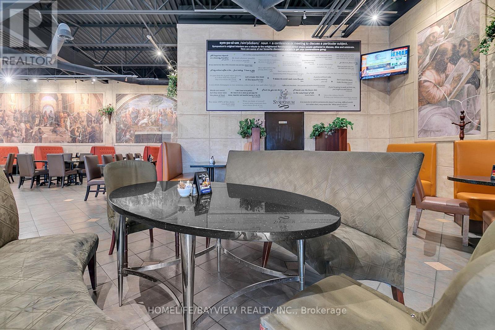 Established & busy Symposium Cafe located in prime plaza with high exposure on high-traffic road. Top brand-name franchise serving best specialty coffees, teas, cold drinks, desserts, pastries, breakfast, brunch, lunches & dinners. L.L.B.O. for 91 Seats Plus 40 seat patio. Beautifully renovated – turn key operation with full kitchen & bar. Don’t miss this fantastic opportunity to be your own boss. Full training provided. Please do not go without appointment and do not talk to staff/customers. (id:62692)