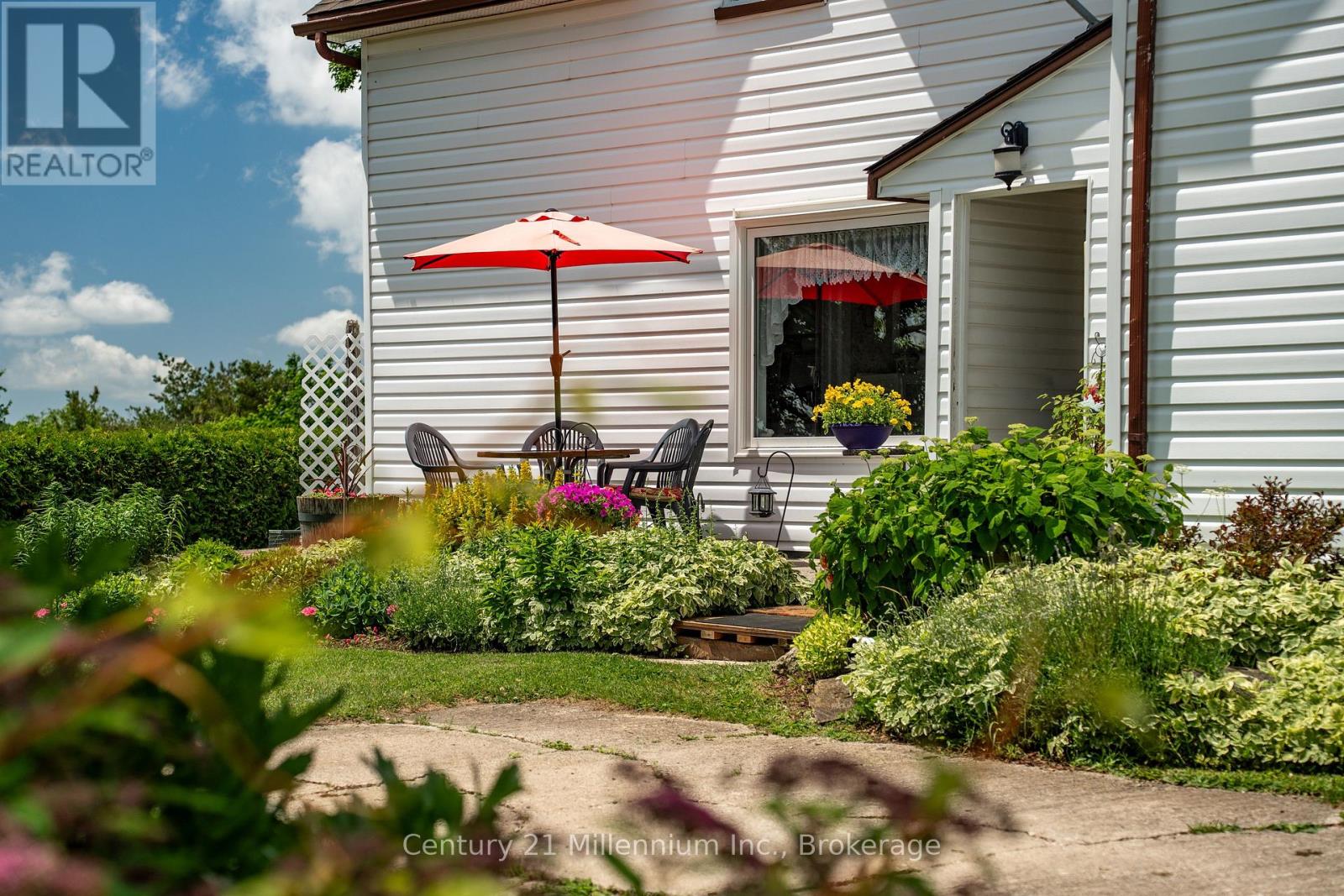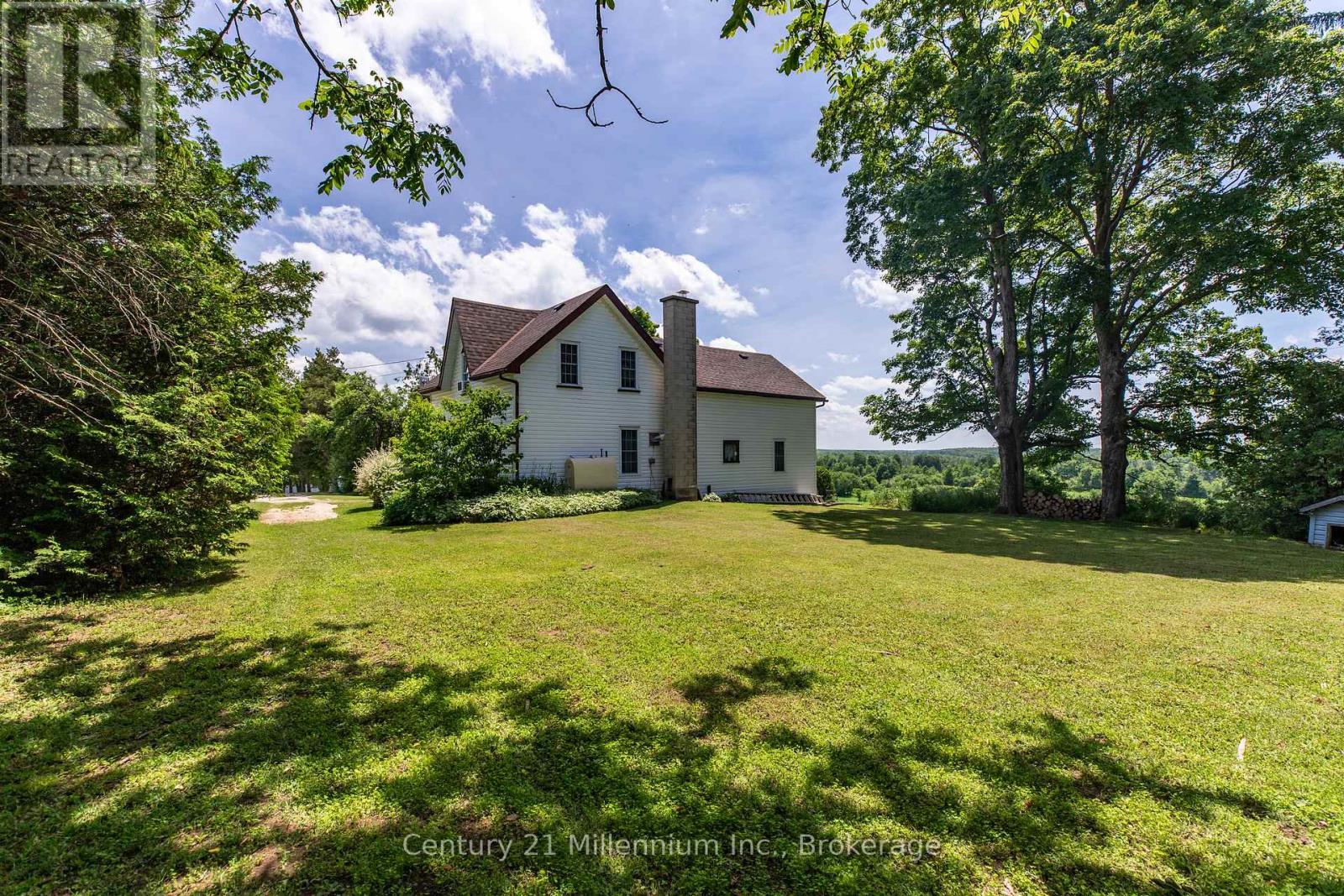 Perched atop a hill, this private 47-acre farm with a charming 1.5 -storey farmhouse offers million-dollar panoramic views of Grey County's countryside and the perfect blend of comfort, functionality, and rural charm. Located just 5 minutes North of Markdale on Hwy 10 at Sideroad 80, just 30 minutes from Owen Sound. This property captures the essence of peaceful country living. Inside the welcoming home, you'll find a spacious kitchen with pantry and plenty of cupboards, laundry right off the kitchen, two staircases, a bright living room, cozy den with wood stove and a primary bedroom conveniently located on the main level. Upstairs, one wing offers two bedrooms and a 4-piece bath, while the separate upper level features a large sitting area and two additional bedrooms, ideal for guests or extended family seeking privacy. The basement has been spray-foamed for improved energy efficiency and includes a dedicated wood storage room.The land features approximately 40 workable acres of fertile farmland with excellent yields, along with breathtaking views in every direction. Outbuildings include a large bank barn with lean-to, a versatile honey house with concrete upper level, and a powered shed/workshop for tools, hobbies, or storage. Set in an area renowned for four-season recreation, the edge of the property is the all purpose rail trail, a 77km trail from Owen Sound to Dundalk and minutes from skiing, hiking, paddling, fishing, golf, waterfalls, and more. Whether you're looking for a productive farm, hobby retreat, or peaceful family homestead, this exceptional Grey County property offers endless opportunity. (id:62692)