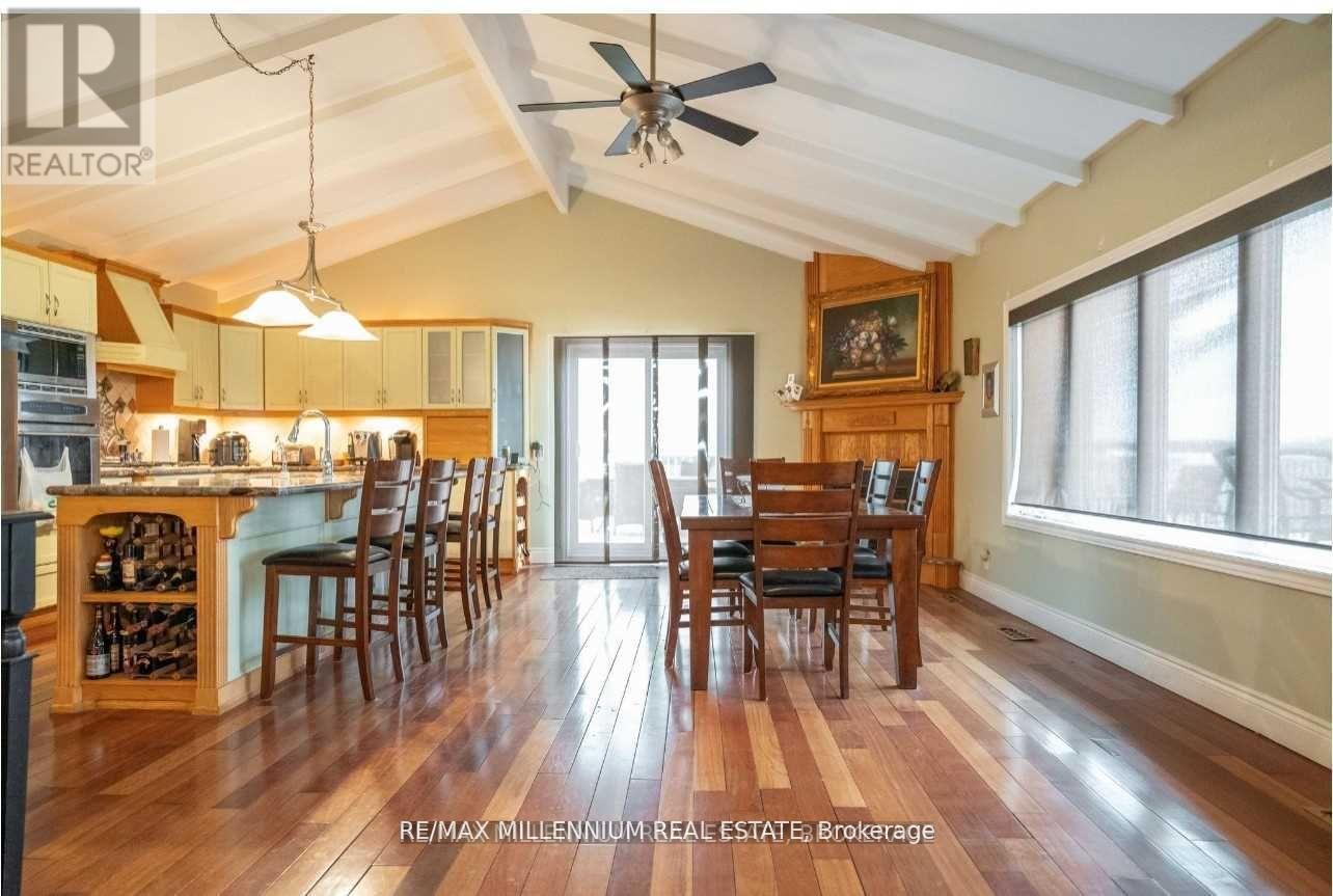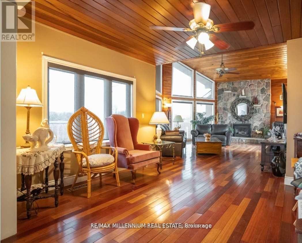 Welcome to 8078 Hwy 9 - Opportunity meets Elegance. Experience a rare opportunity to own an extraordinary estate offering over 4,500 Sq ft of refined above-grade living space, complemented by a fully finished walkout LowerLevel perfectly suited for in-laws, extended family, or multi-generational living. Set on more than 49.928 acres ofA1-zoned agricultural land, this property offers boundless potential for both lifestyle and investment. Designed with both scale and sophistication, this home features 5 spacious bedrooms, 4 luxurious bathrooms, and an oversized 3-car garage offering ample room for family, guests, and growing needs. The main level exudes timeless chalet charm, with formal living and dining rooms adorned in rich hardwood. At the heart of the home lies a spectacular chefs kitchen, fully outfitted with a sprawling center island, granite countertops, custom tile backsplash, and top-tier stainless steel appliances truly a dream for culinary enthusiasts. Unwind in the sumptuous primary suite, featuring elegant hardwood floors, a generous walk-in closet. Swimming Poll with the salt water system, Sauna andSpa-inspired 6-piece ensuite bath your personal sanctuary for relaxation and comfort offered in the lower level. lower level offers an additional 2,100+ Sq ft of beautifully finished space. With its own full kitchen, an open-concept living area, 2 private bedrooms, this level is ideal for independent living arrangements. For hobbyists, entrepreneurs, or those in need of serious workspace, the property features a fully equipped workshop spanning over2,000 Sq ft perfect for creative pursuits or business ventures. Equipment storage/barn provides more space for agricultural use, or entrepreneurial projects. (id:62692)