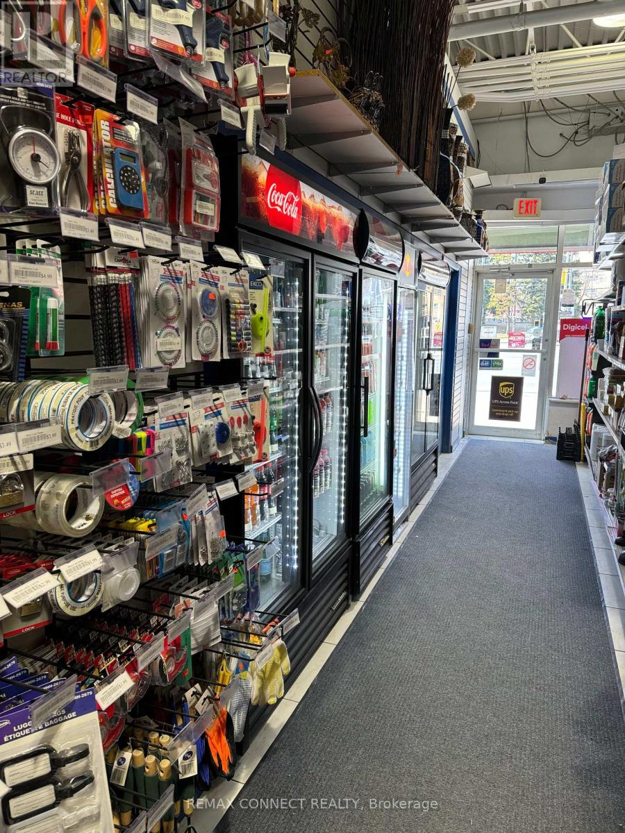 **Prime Location!** Turn-key and profitable convenience store in a high-demand Scarborough location at Morningside & Kingston. This corner double-unit offers TWO entrances, TWO OLG Machines and approx. 1,700 sq ft. of operating space with excellent visibility, strong exposure on a VERY busy Kingston Rd, surrounded by dense (& growing) residential and commercial activity. Multiple income streams include lottery, printing/copy services, ATMs, Key & Fob copying, and multiple Shipping service contracts. High margin inventory, such as clothing, smoking accessories, home goods and more. Established business since 2007, with tremendous Goodwill and high potential for continued growth. The space offers an entrance for pedestrians/commuters on Kingston Rd and an entrance from a high traffic plaza featuring solid anchors. Lease secured to 2032 + 5yr option to renew. Current business hours are 9-9 & 10-7 on Sundays. (id:62692)